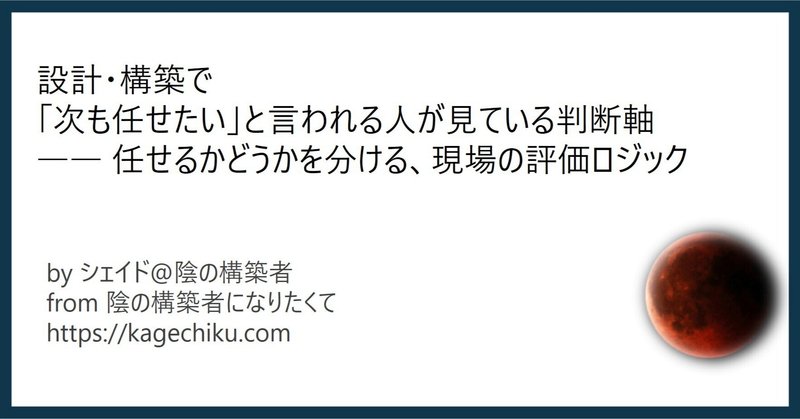 設計・構築で「次も任せたい」と言われる人が見ている判断軸 ―― 任せるかどうかを分ける、現場の評価ロジック